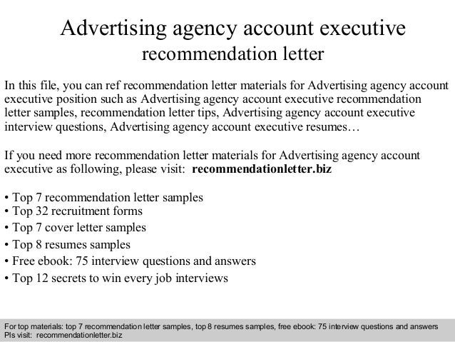 Advertising agency account executive recommendation letter