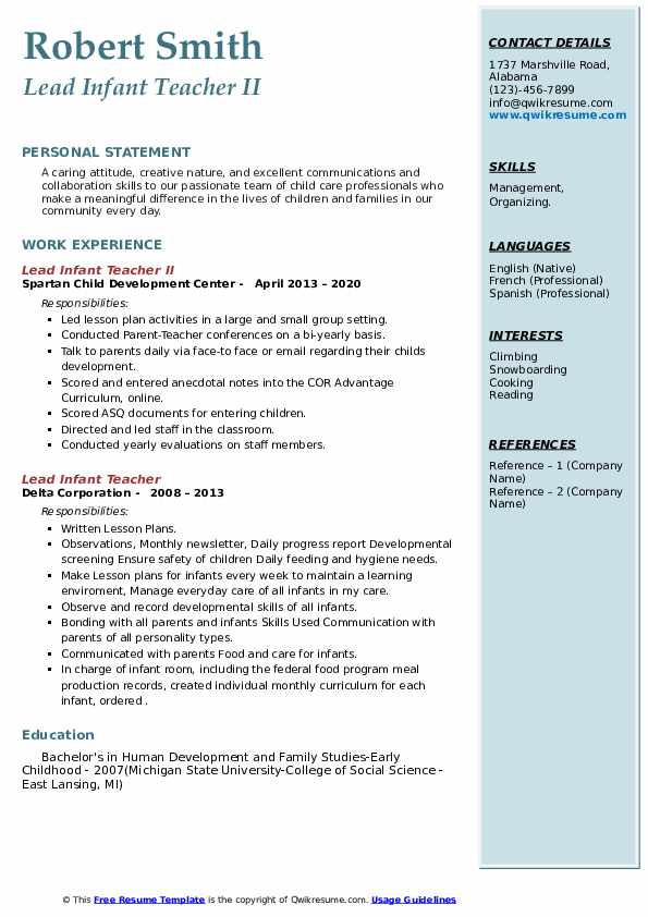 See a preschool teacher resume sample that goes to the front of the class. Infant Teacher Resumes - Infant Toddler Teacher Resume Template Best Design Tips. Infant Teachers work with young children and encourage them to discover the world through play.
