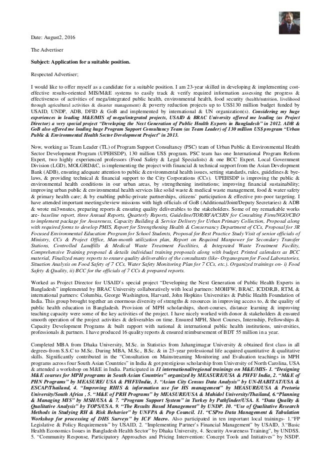 Application For Suitable Position. I am a born innovator and I enjoy creating new things and that's the reason I believe I am suitable for this job. I have been graduated in (Educational qualification with the subject name) and having.