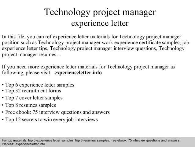 Experience Letter For Project Manager. A cover letter for a project manager position needs to highlight the applicant's leadership qualities primarily. My project management experience has fully utilized my skills at working with cross-functional teams to manage all deliverables.